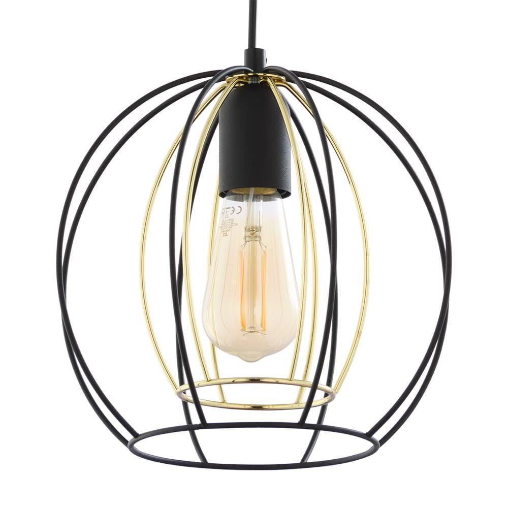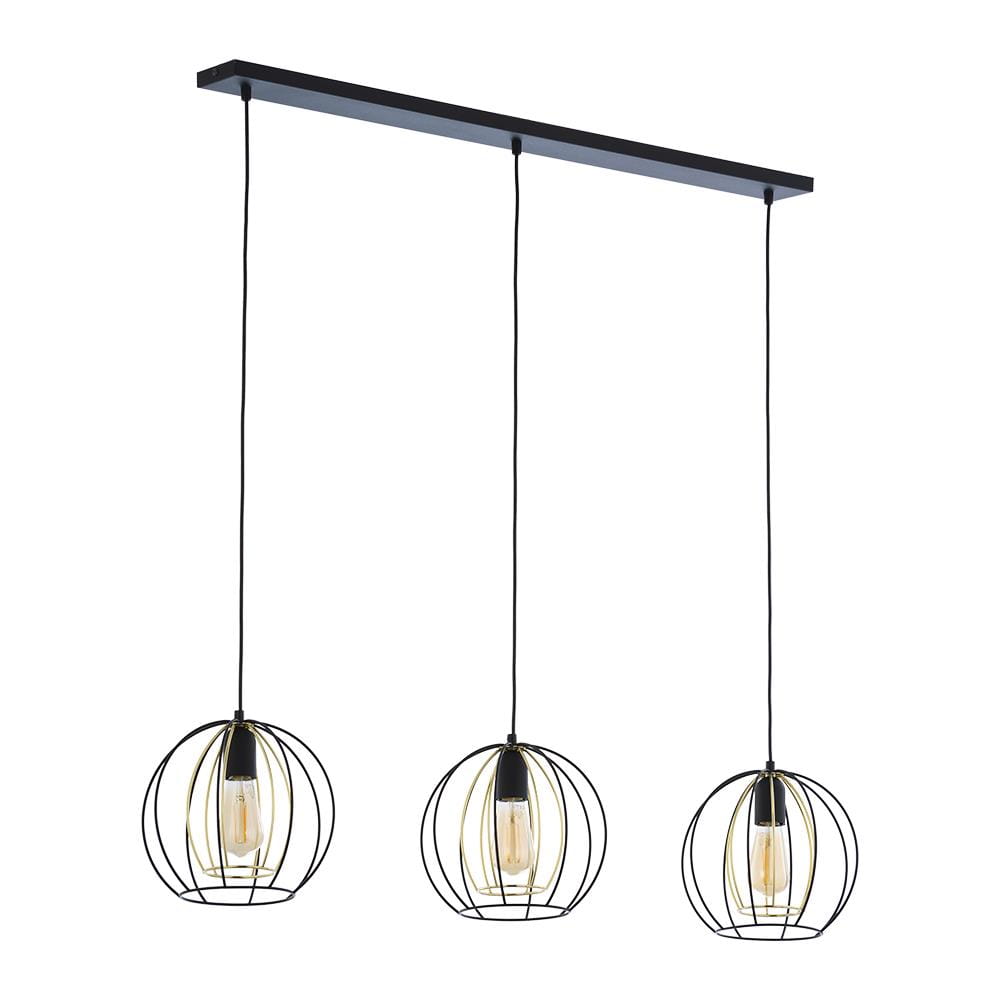 Lampa wisząca JAULA na listwie z trzam drucianymi, czarno-złotymi kloszami loft TK Lighting