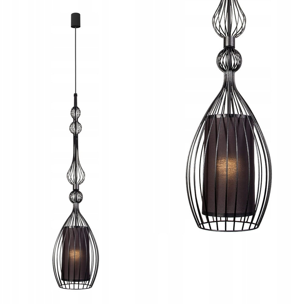 Lampa wisząca czarna z drucianym kloszem oraz wewnętrznym abażurem 8864 Nowodvorski