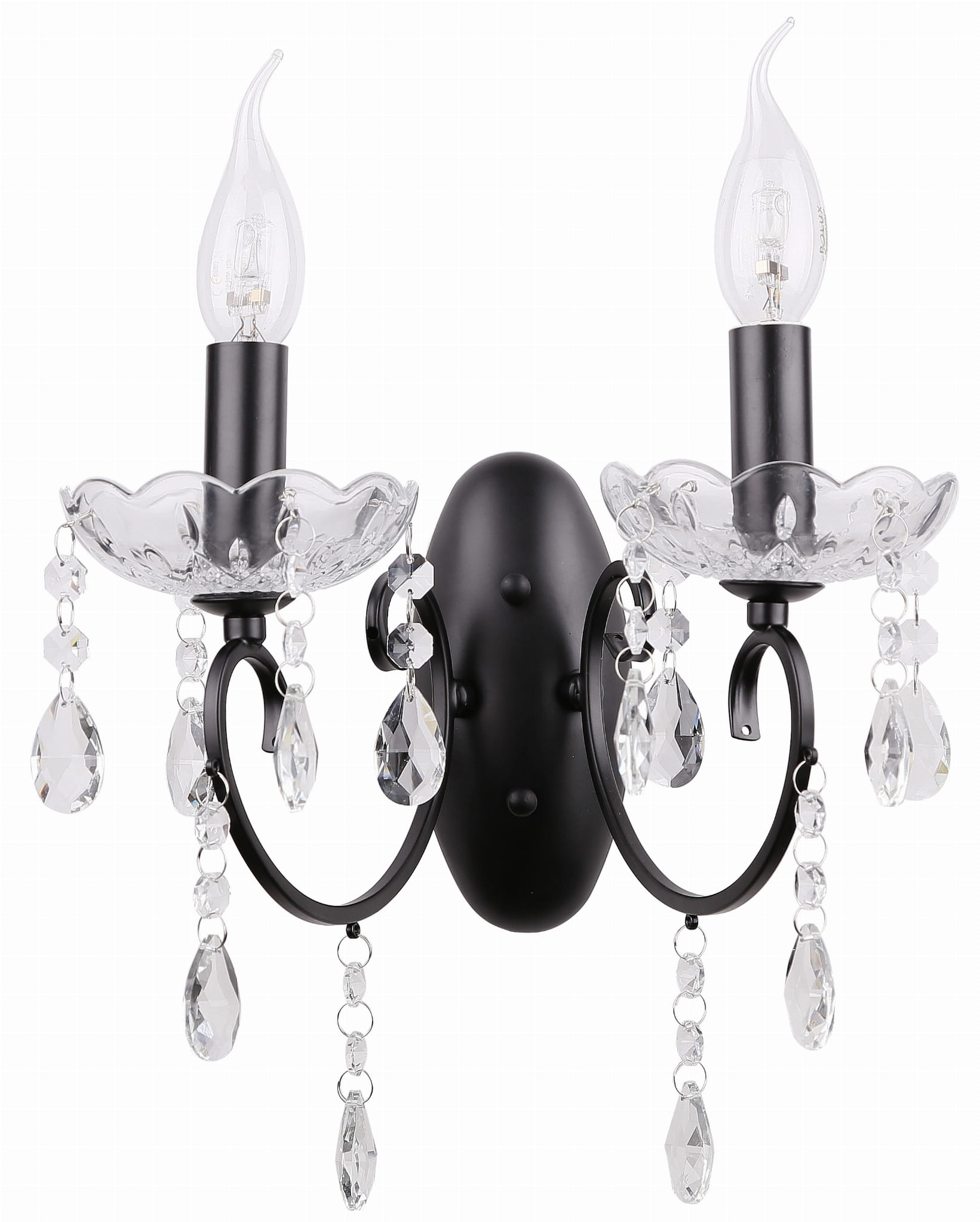 Kolor: czarny, Materiał: podstawa stalowa, elementy ozdobne szklane, bez kloszy