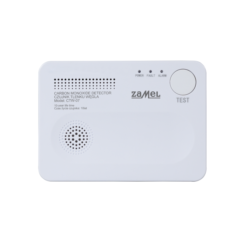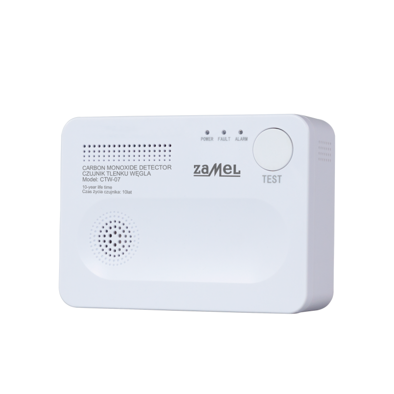 Czujnik CTW-07 służy do ciągłego monitorowania niebezpiecznego stężenia tlenku węgla w powietrzu. W momencie wykrycia niebezpiecznego stężenia urządzenie załącza alarm dźwiękowy i optyczny. Dzięki zasilaniu bateryjnemu urządzenie jest łatwe do umieszczenia w dowolnym miejscu gdyż nie musimy prowadzić żadnej instalacji. Wyposażony jest w zaawansowany czujnik elektrochemiczny o żywotności 10 lat oraz w układ autodiagnostyczny który sygnalizuje uszkodzenie czujnika oraz rozładowującą się baterię.