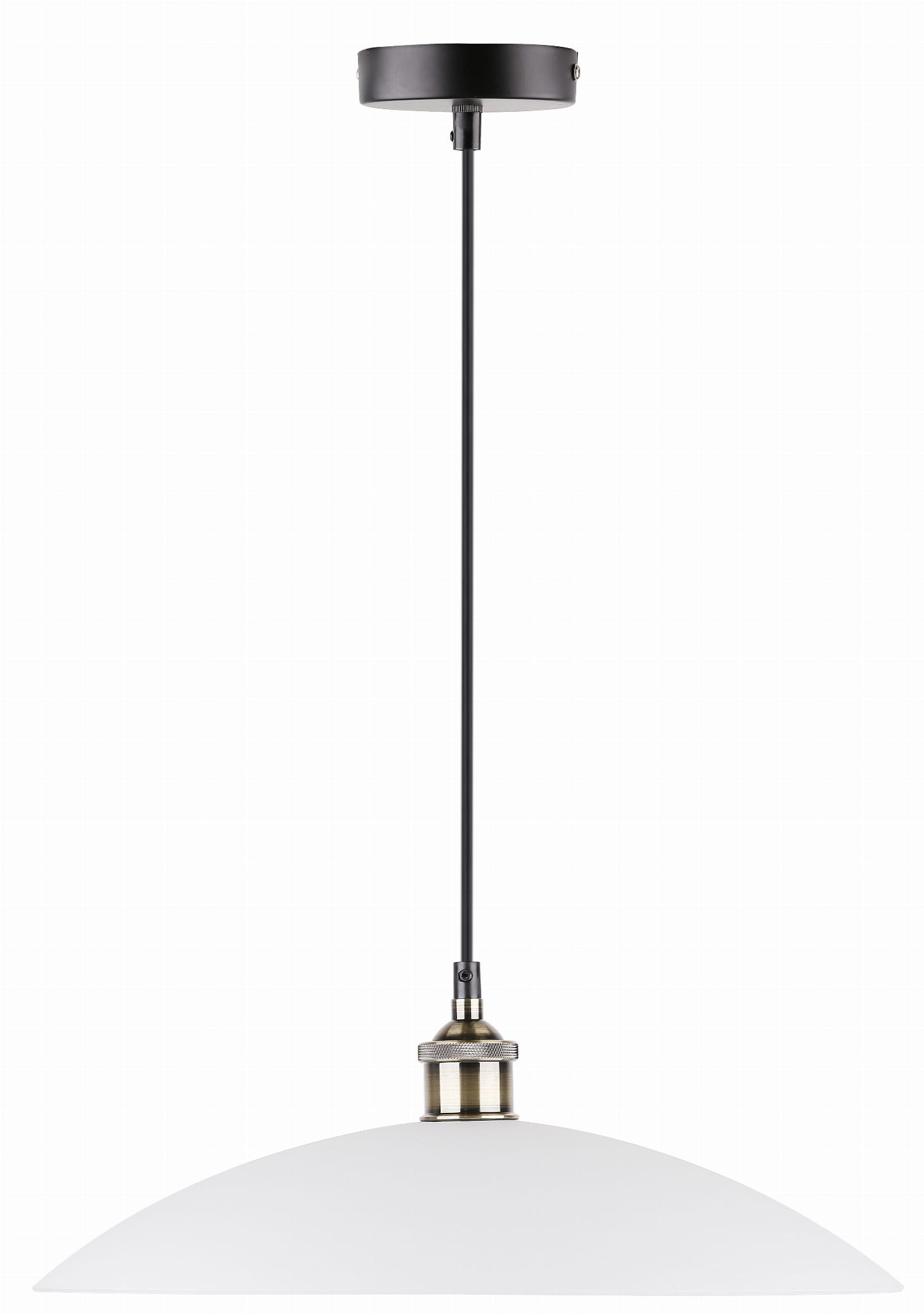 Kolor: biały, Materiał: zawiesie metalowe, klosz szklany