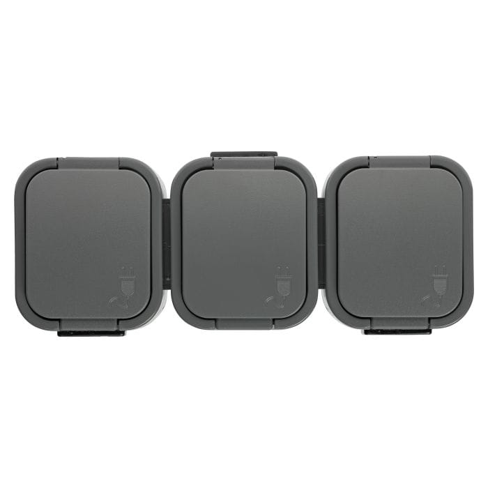 Gniazdo potrójne natynkowe bryzgoszczelne z klapką IP54 szare