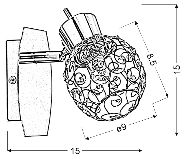 Kolor: chromowy, Materiał: klosz metal z koralikami z akrylu, podstawa metalowa