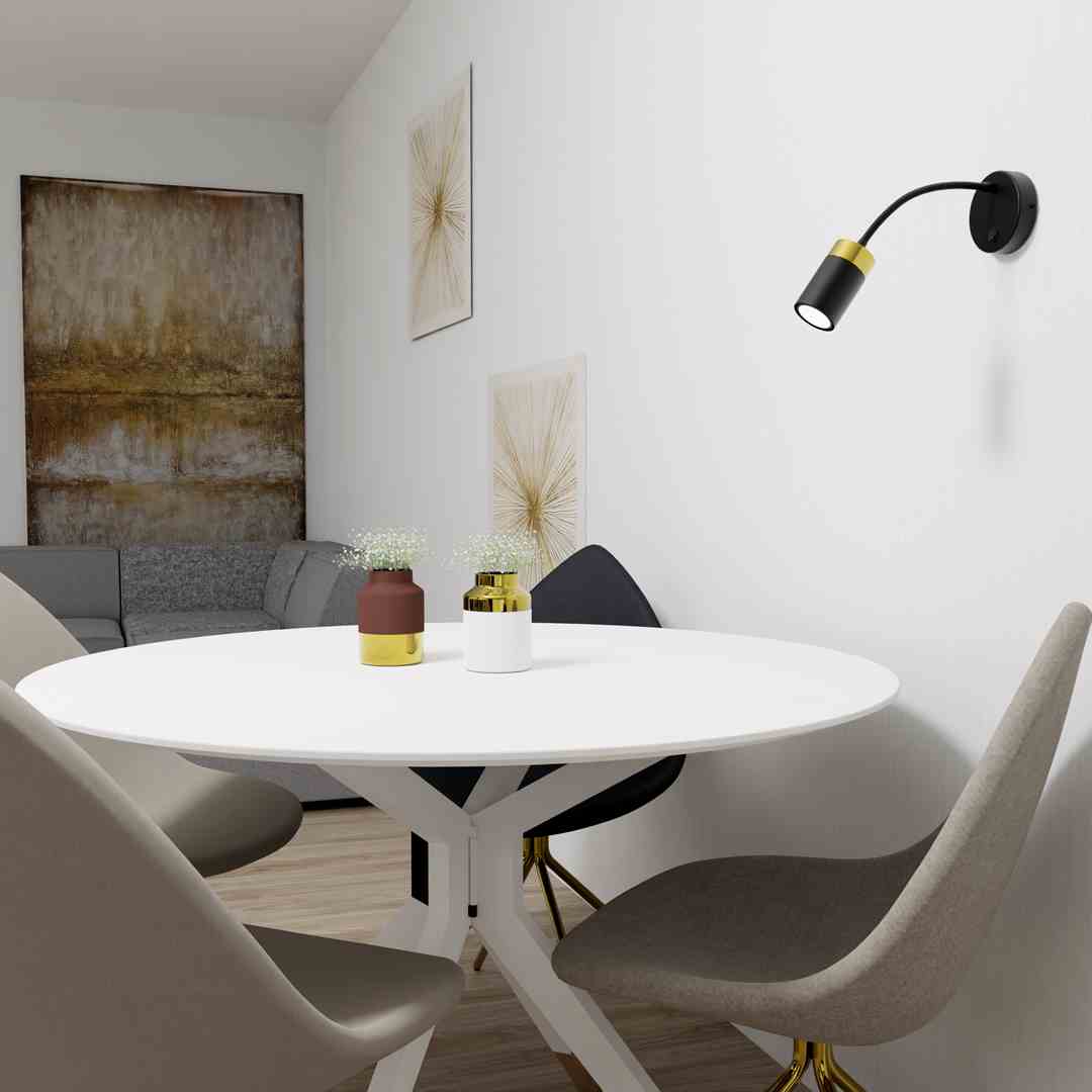 Kinkiety JOKER BLACK GOLD wyróżnia klasyczny, choć jednocześnie nowoczesny design. Klosz o ciekawym, ponadczasowym kształcie i miękkich liniach sprawdzi się w szczególności w minimalistycznych aranżacjach. Ten rodzaj oświetlenia z pewnością przyciągnie uwagę. Elegancka czerń ze złotymi detalami to najlepszy wybór do salonu i sypialni. Dużą zaletą tego modelu jest możliwość regulacji jego szerokości, co pozwala dopasować go do naszych potrzeb (szerokość od 100 do 420). Oprócz możliwości dostosowania szerokości zadbaliśmy również o to, by model ten zapewniał możliwość dowolnej zmiany kierunku światła. Wszystko to za sprawą ruchomej szyjki kinkietu. Lampa posiada włącznik w oprawie, co oznacza brak konieczności jego montażu na ścianie.