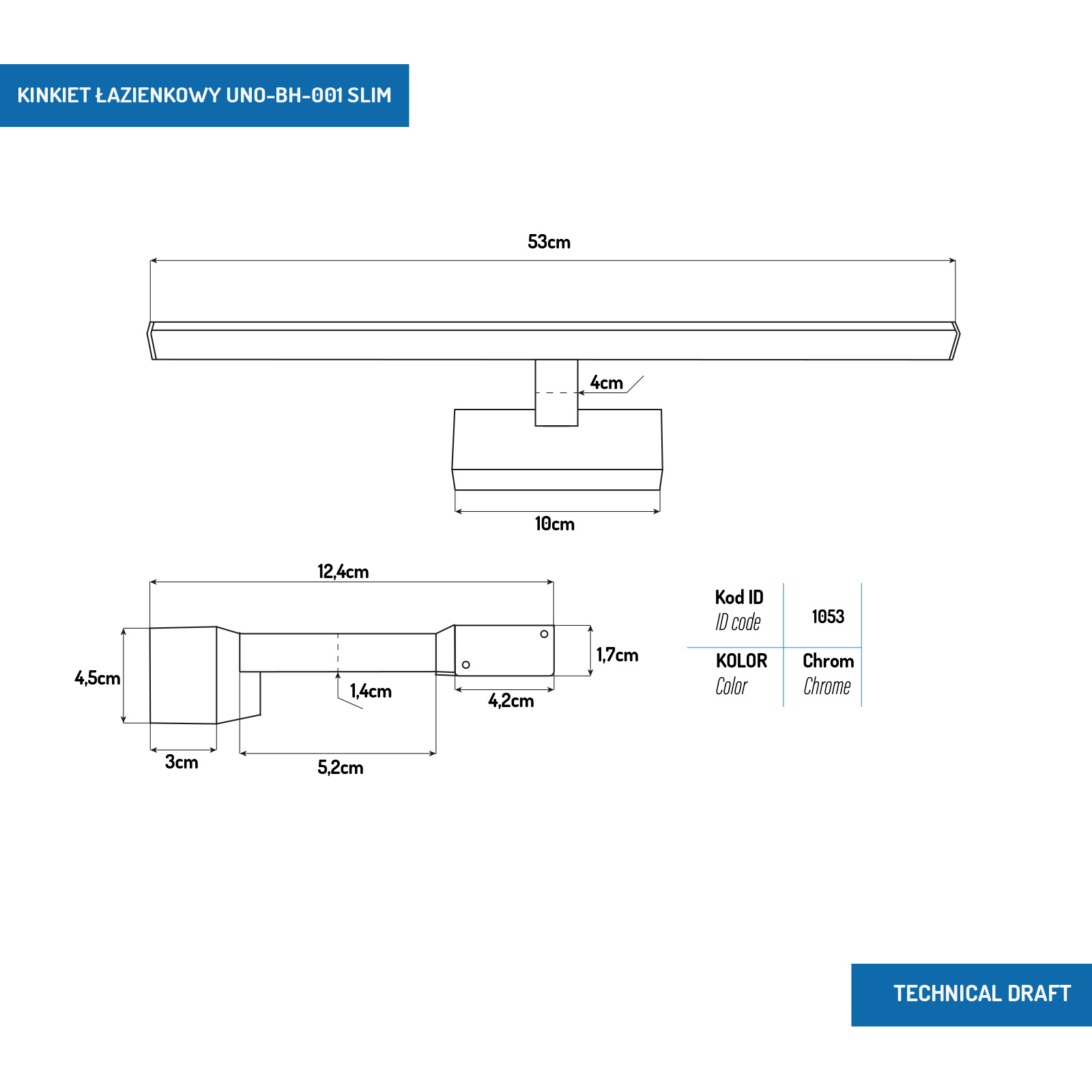 Kinkiet łazienkowy Slim chrom 53 cm 12W 4000K UNO-BH-001 - 1053 DomenoLED