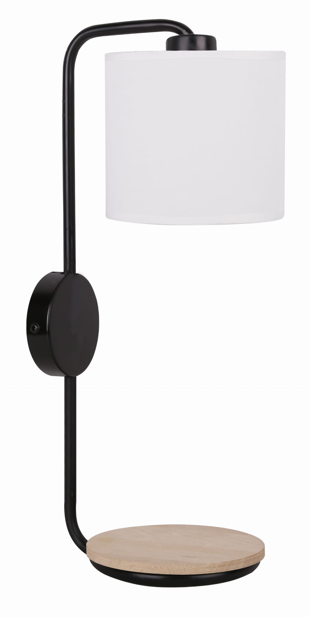 Kolor: czarny, Materiał: podstawa stalowa + drewno, abażur tkanina + PCV