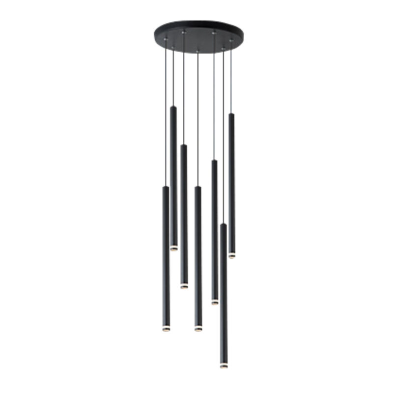 Lampa wisząca 7x czarna rurka tuba 50cm regulowana wysokość