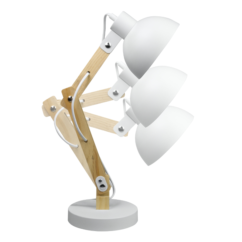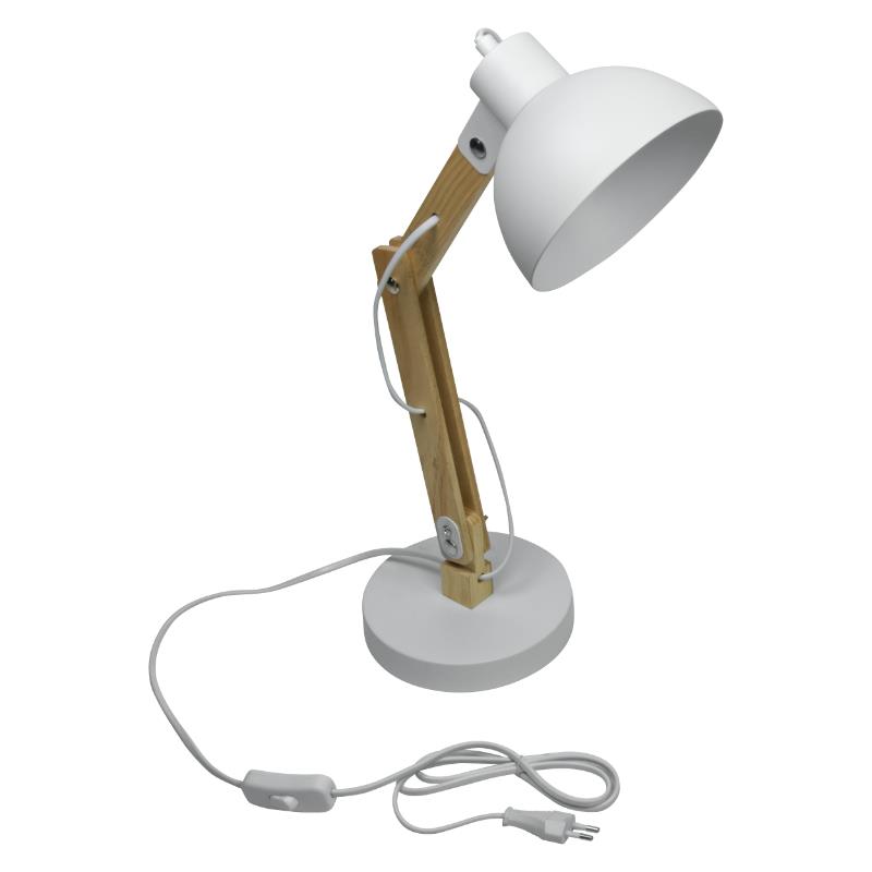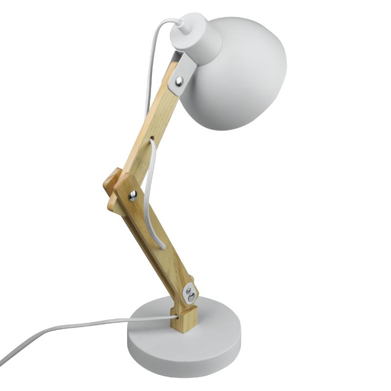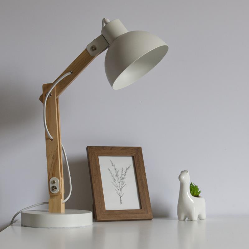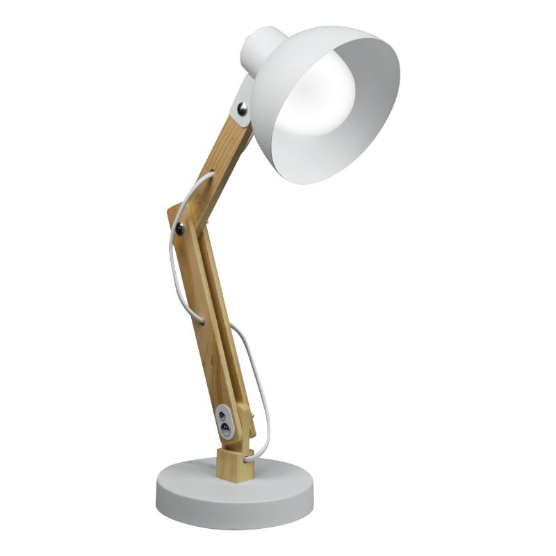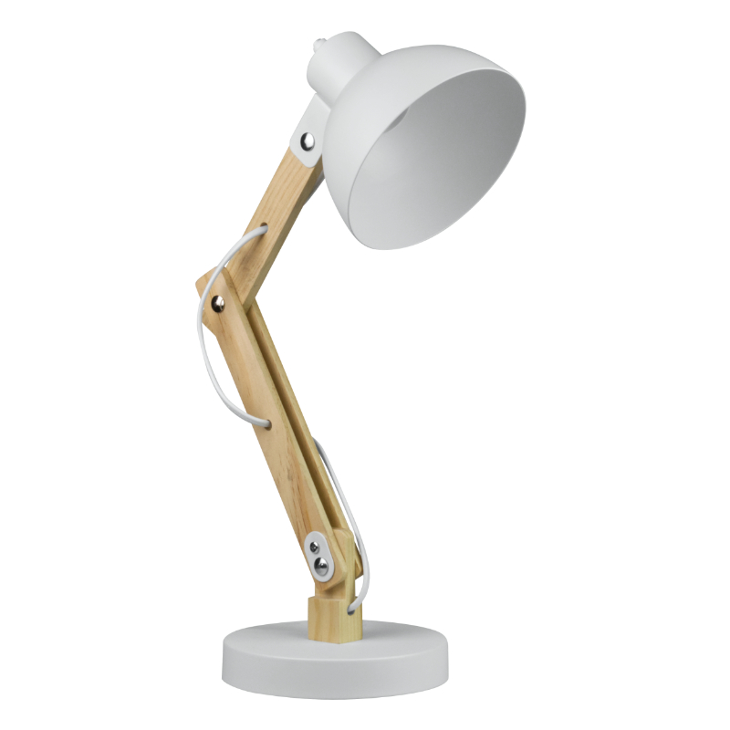 Lampka biurkowa składana na żarówkę E27 kolor biały+drewno