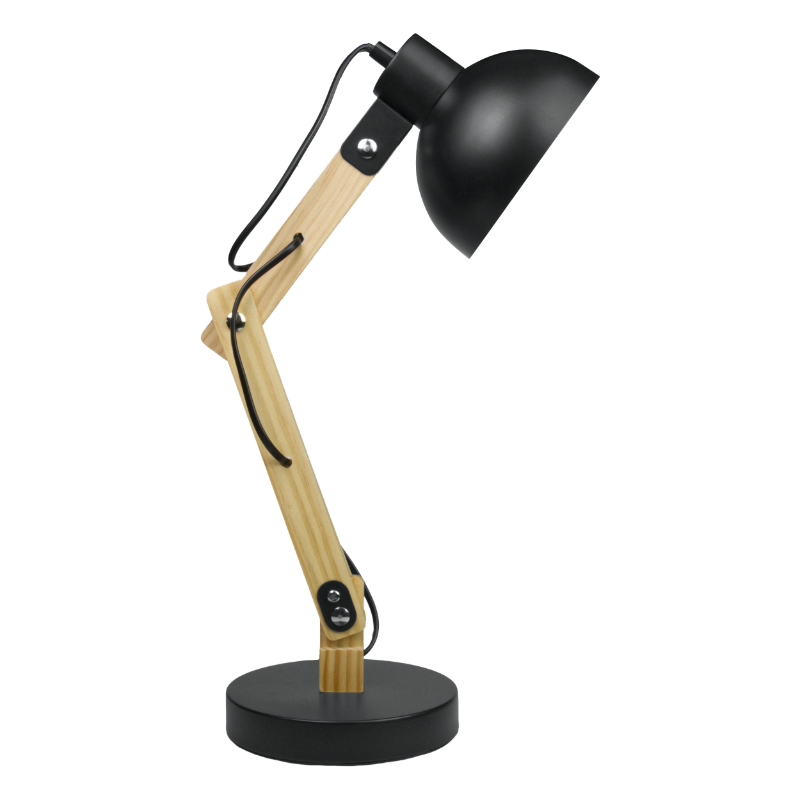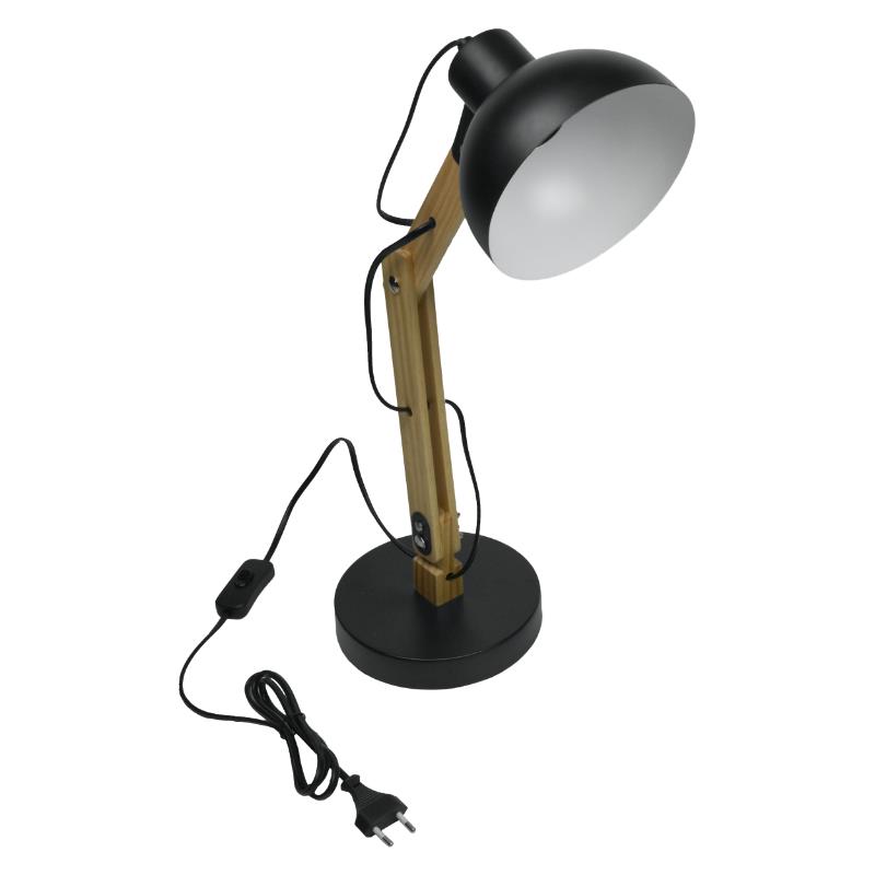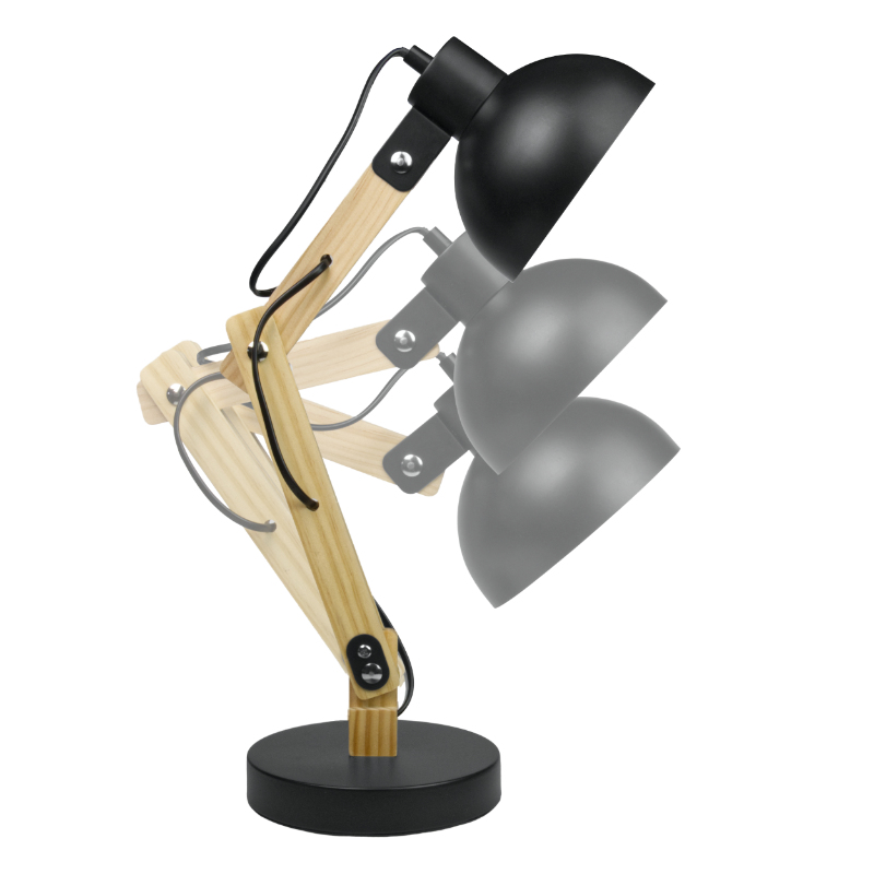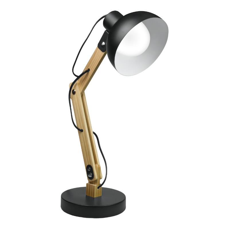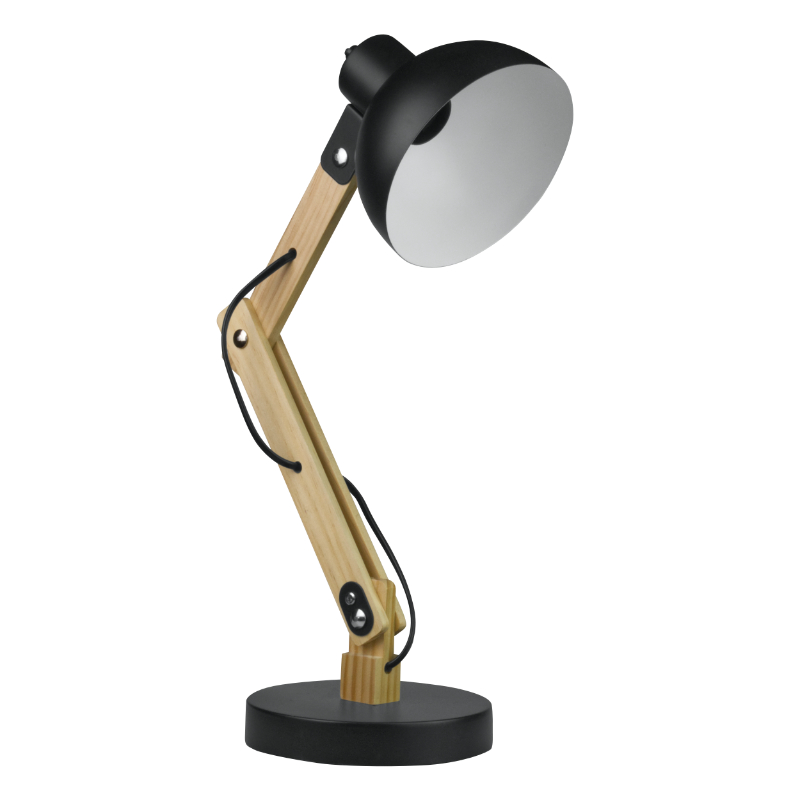 Lampka biurkowa składana na żarówkę E27 kolor czarny+drewno
