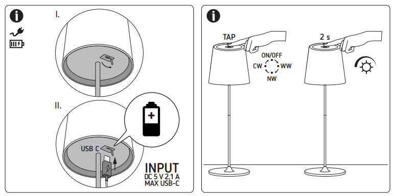 Lampka nocna stołowa LED kolor czarny Ip54 zmienna barwa światła akumulatorowa ładowanie USB-C