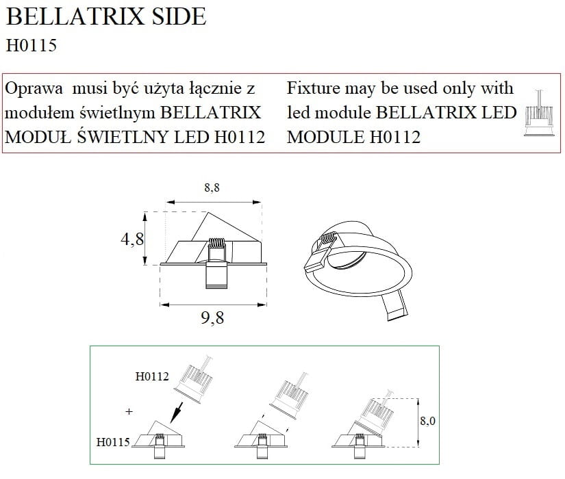 | Rodzaj | Oprawa Wpustowa - Bez Modułu Świetlnego Led H0112 |