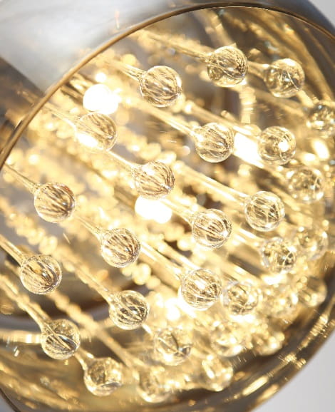Przyciągający wygląd oprawa Moonlight zawdzięcza niezwykłemu, lustrzanemu kloszowi. Gdy lampa jest wyłączona, jej piękna, nowoczesna, lekko zaokrąglona bryła srebrzyście odbija światło, przywodząc na myśl księżyc w pełni. Ledwie widoczne szklane krople połyskują wewnątrz. Przedstawienie zaczyna się, gdy włączamy lampę: każda szklana kropla, zawieszona na łańcuszku ze szklanych kryształów, połyskuje przez klosz złocistymi refleksami. Oprawa Moonlight, dostępna w sześciu różnych wersjach, jest doskonałym wyborem zarówno do ascetycznie urządzonych pomieszczeń, w których zdefiniuje przestrzeń, jak i bogatych wnętrz w stylu glamour.