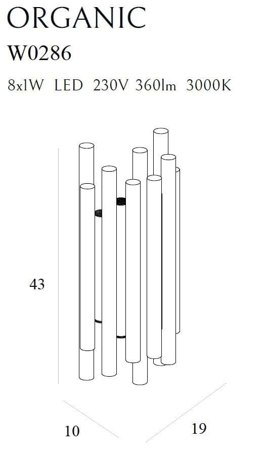 Lampy Organic będą wspaniałą ozdobą do luksusowych i nowoczesnych wnętrz. Zbudowane są z kilkunastu nieregularnych walcowatych brył, zakończonych elementem świetlnym, które zapewnią szeroki strumień jasnego światła. Rodzina Organic składa się z plafonów, lamp wiszących oraz kinkietów, oferowanych w co najmniej dwóch atrakcyjnych metalicznych kolorach.