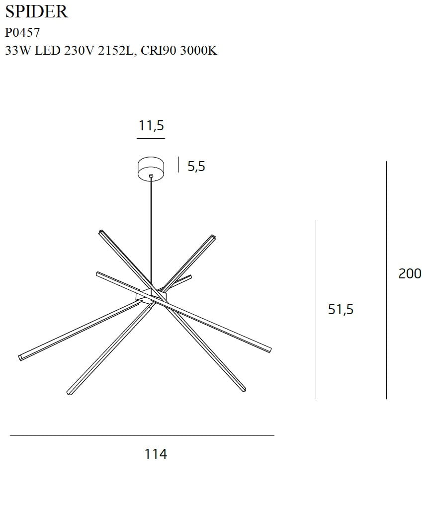 Seria lamp Spider to gratka dla osób lubiących niestandardowe rozwiązania aranżacyjne. Wykonana jest z czterech metalowych profili w białym, złotym lub czarnym kolorze, wychodzących z metalowej kostki. W każdym profilu wprawione są taśmy LED skierowane ku dołowi. Uzupełnieniem opraw Spider mogą być kinkiety w minimalistycznym stylu.