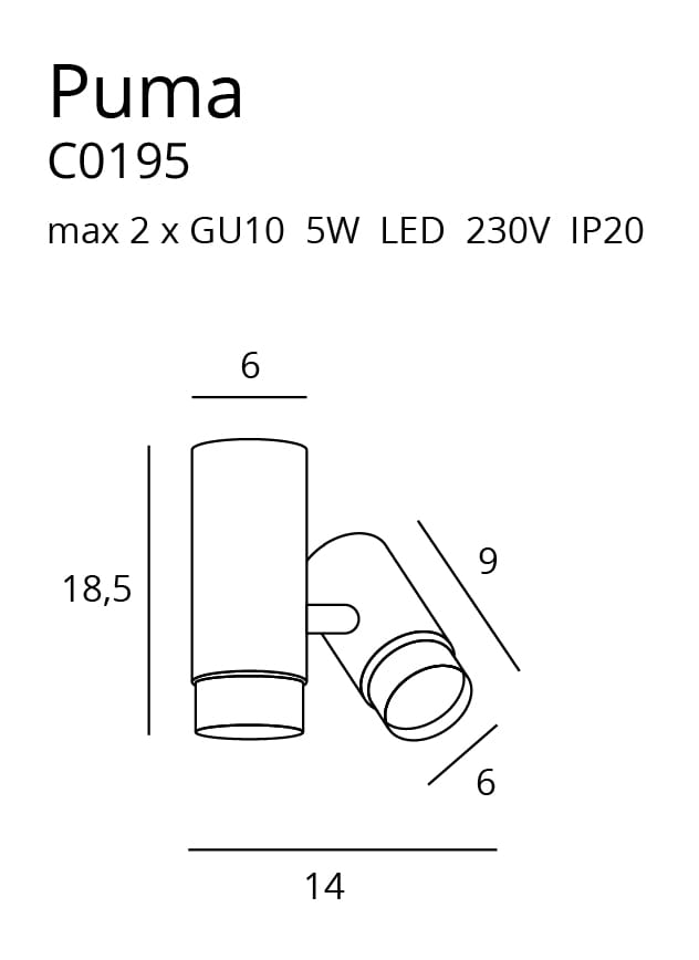Moc/Power: max 2 x GU10 5W LED 230V