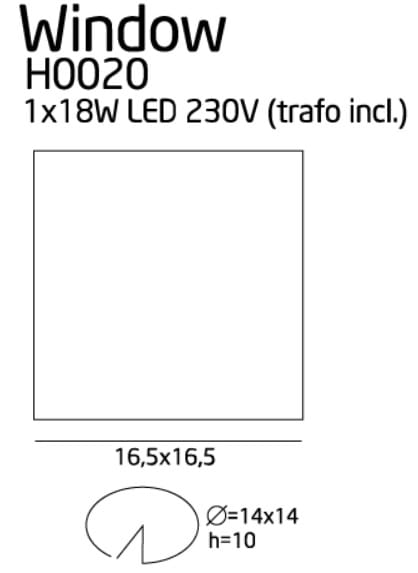 Moc/Power: 1 x 18W LED 230V (trafo incl)