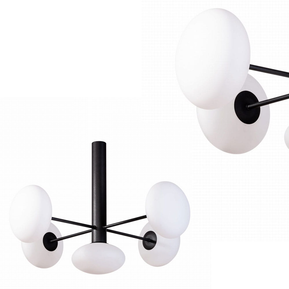 »Nowoczesna lampa sufitowa z rodziny OMI, kolor czarny, białe klosze do salonu - 1198 Zuma Line