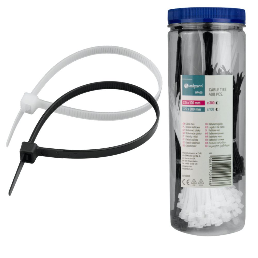 Opaski zaciskowe OP400 to praktyczny zestaw składający się z 400 sztuk opasek w różnych wymiarach i kolorach, co czyni je uniwersalnym rozwiązaniem do różnorodnych zastosowań, takich jak organizacja kabli czy mocowanie elementów.