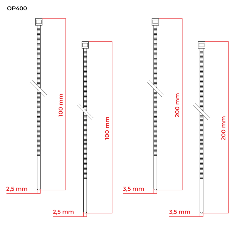 - Wymiary: 2,5 x 100 mm (300 szt.), 3,5 x 200 mm (100 szt.).