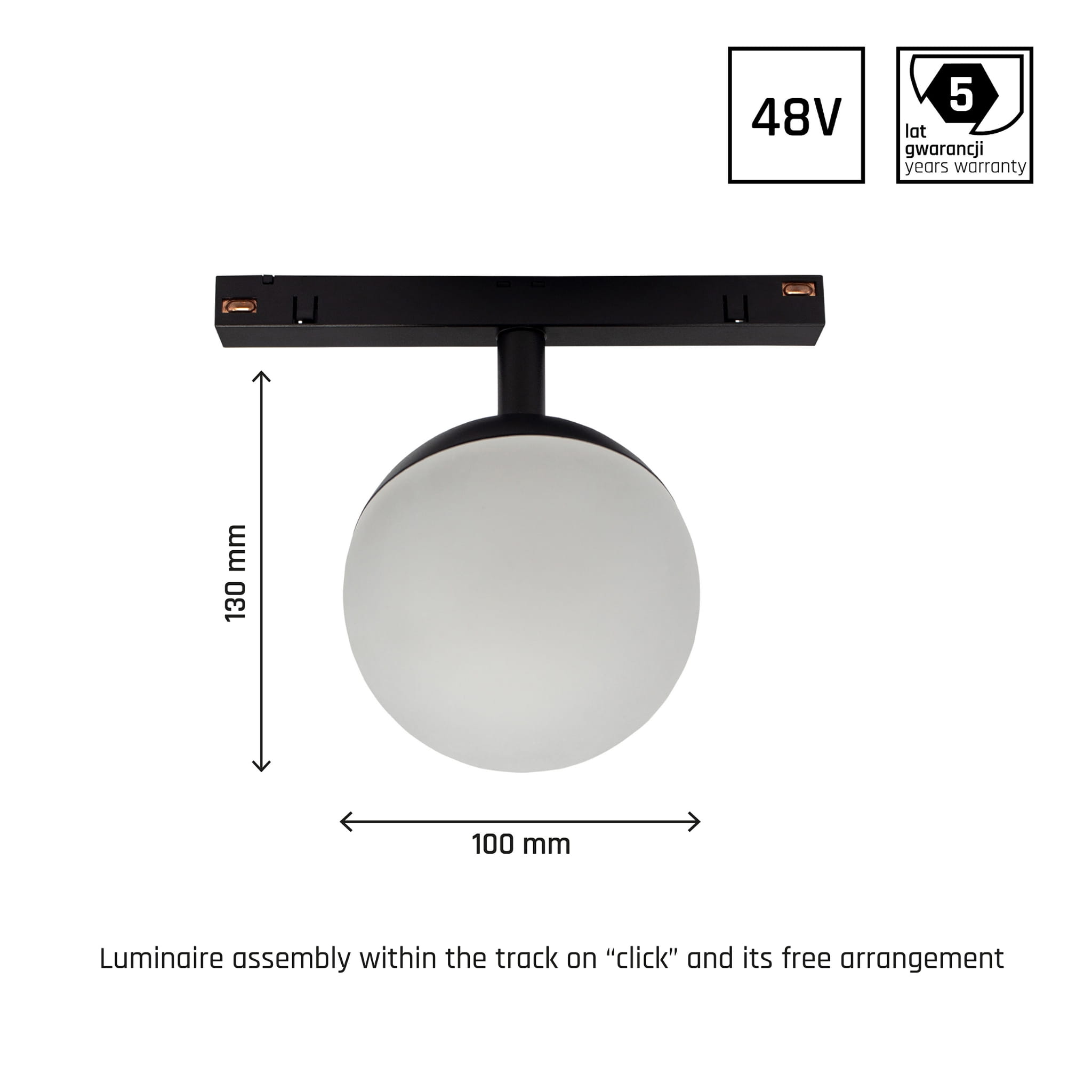 Oprawa GLOBE 5W do szynoprzewodów magnetycznych czarna system SHIFT WLD+40000 Spectrum