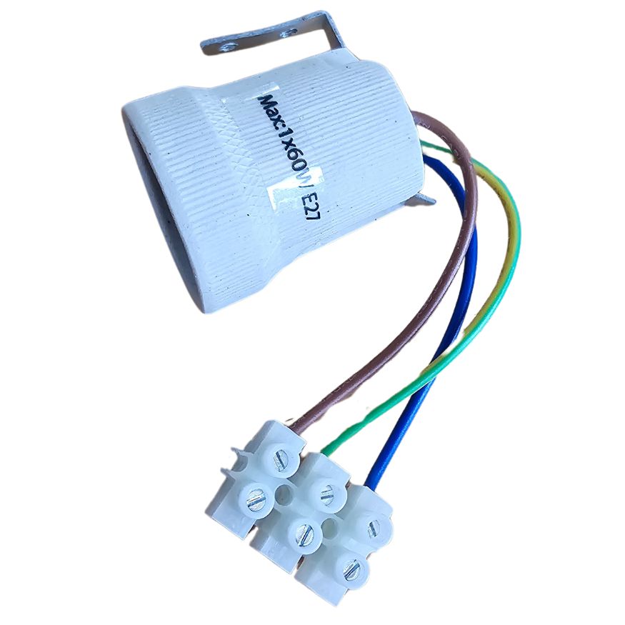 Oprawka Ceramiczna E27 max. 60W z przewodami i kostką
