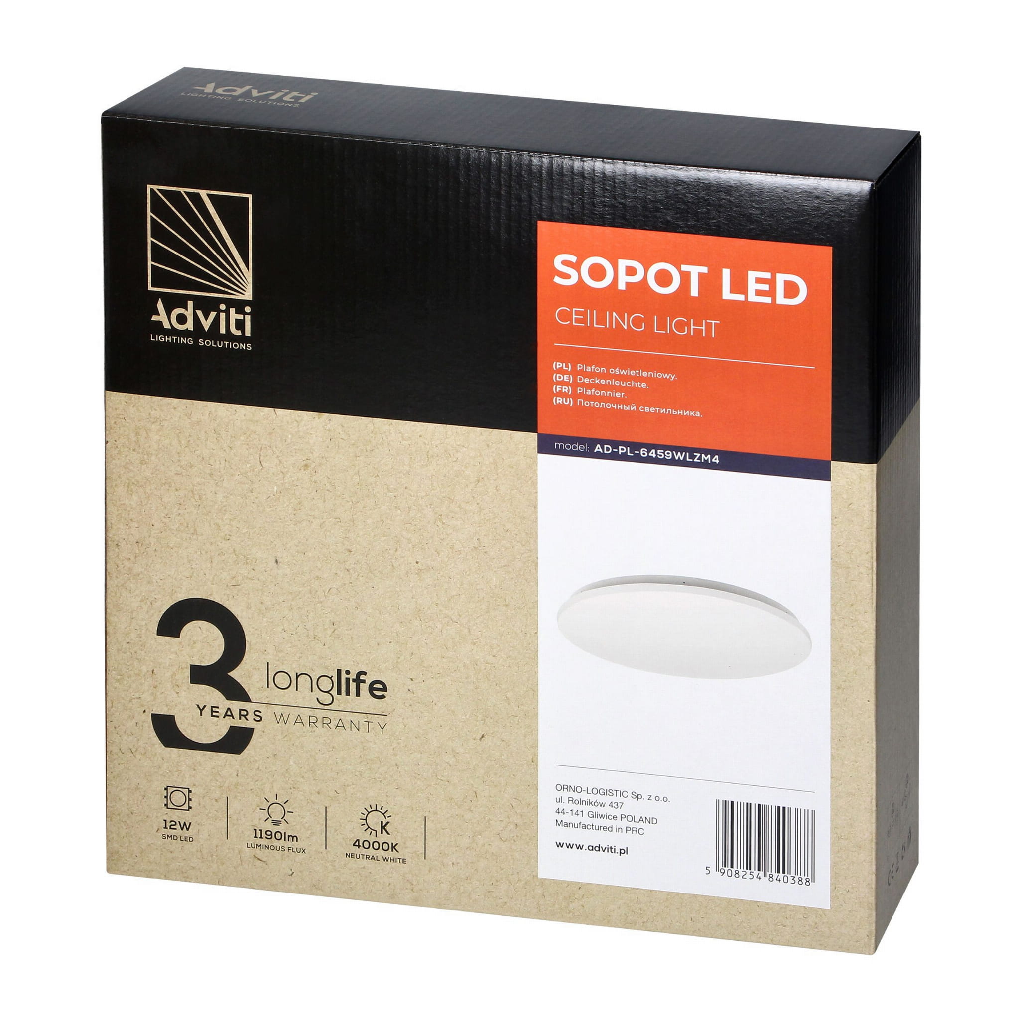 SOPOT, to plafon LED o mocy 12 W i neutralnej barwie światła (4000K), o natężeniu 1190lm. Lampa jest wygodna nawet w samodzielnym montażu.