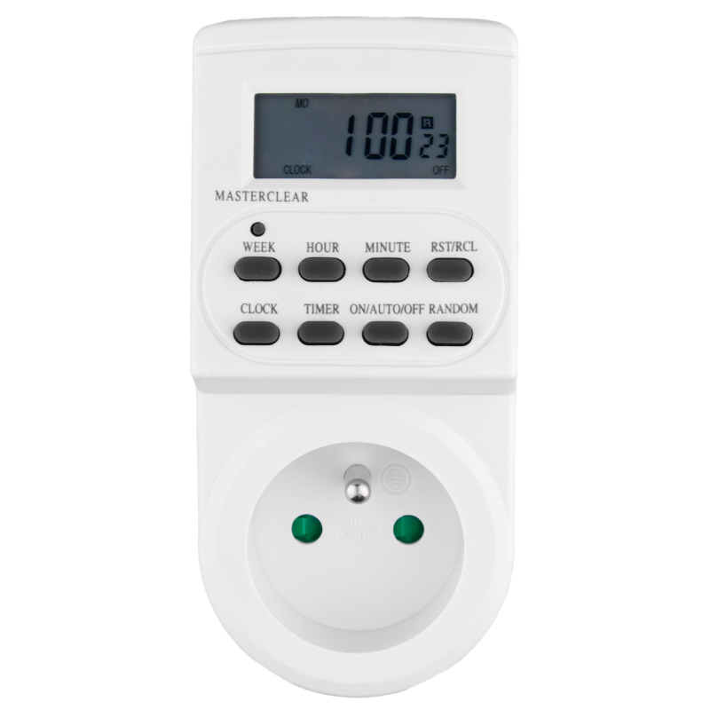 DT03 oferuje możliwość programowania czasu pracy urządzeń w cyklu 24-godzinnym lub tygodniowym, co pozwala na dostosowanie pracy sprzętów do różnych harmonogramów, nawet w trakcie dłuższej nieobecności w domu. Minimalny czas ustawienia wynosi 1 minutę, co pozwala na precyzyjne sterowanie. Dodatkowa funkcja losowego załączania (random) pozwala na automatyczne włączanie urządzeń w nieregularnych odstępach czasowych, co jest idealnym rozwiązaniem np. do symulowania obecności domowników podczas wyjazdu.