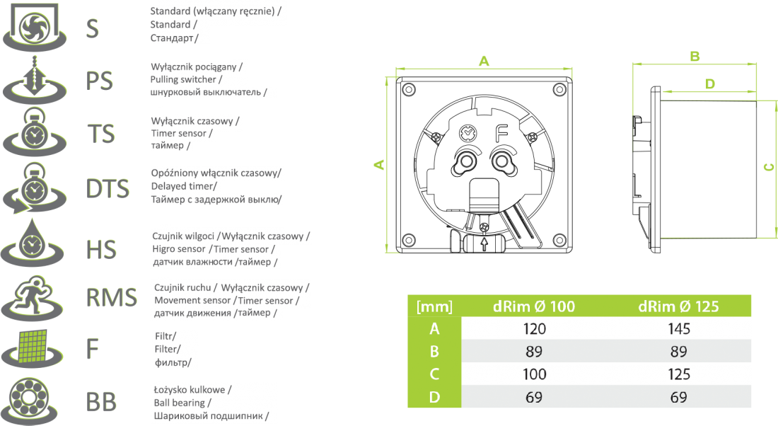 Wentylator łazienkowy ścienno-sufitowy fi100 01-060 Airroxy
