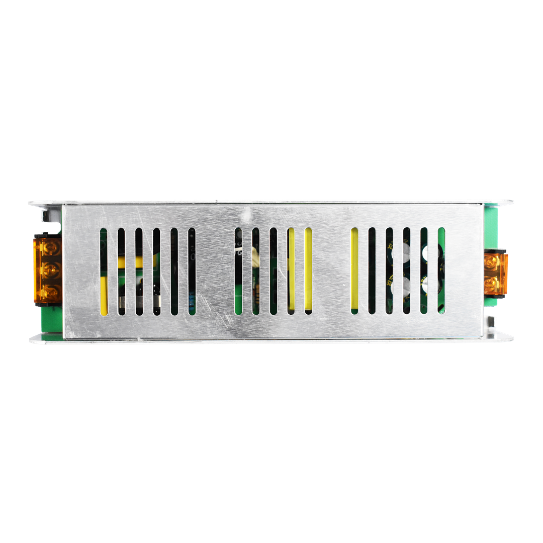 Zasilacz wewnętrzny modułowy Zasilacz marki EKO-LIGHT model EKZAS9300 o mocy 150W w obudowie metalowej o zminiaturyzowanej konstrukcji, która umożliwia prawidłowe chłodzenie oraz zabezpieczenie przed porażeniem. Zasilacz posiada stopień ochrony IP20. Przeznaczony jest do zasilania taśm LED, modułów, paneli, listew, żarówek LED oraz wielu innych urządzeń elektronicznych zasilanych napięciem stałym 12V DC. ?? Główne cechy produktu: ? Zasilacze modułowe przeznaczone są do stosowania w domowych instalacjach oświetlenia LED! • Maksymalna moc wynosi aż 150W • Napięcie wyjściowe 12V DC. ? Modułowa konstrukcja umożliwia łatwy i wygodny montaż do powierzchni poziomych jak i pionowych wewnątrz pomieszczeń. • Montaż : wystające przewody wystarczy zgodnie z instrukcją obsługi połączyć z jednej strony do źródła led a z drugiej do zasilania, do łączenia przewodów zaleca się użycia kostek elektrycznych, montażu powinna dokonywać osoba z uprawnieniami elektrycznymi ? Wbudowane zabezpieczenia gwarantują nieprzerwaną pracę wszystkich podłączonych elementów LED. • Stabilizator napięcia. ? Napięcie zasilające 100-240V AC. ? Szerokie zastosowanie (wszystko co potrzebuje prądu stałego 12V) ??Dane techniczne: • Maksymalna moc: 150W • Napięcie wyjściowe: 12V • Natężenie wyjściowe: 12,5A • Stopień ochrony: IP20 • Zastosowanie: wewnętrzne • Rodzaj: standard • Wymiary: 200 x 98 x 43 mm Przykład możliwości podłączenia taśmy led – moc zasilacza wynosi 60W w przypadku zasilenia taśmy led zaleca się podłączenie odcinka którego moc nie przekracza 50W czyli np. 5m taśmy led o mocy 10w z metra