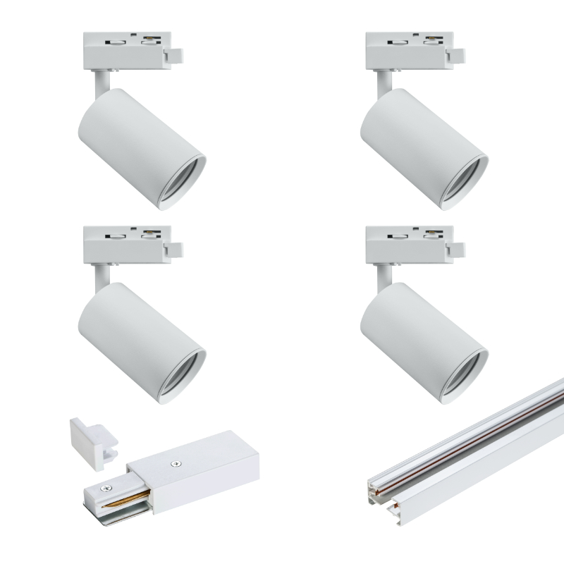 Zestaw oświetlenia szynowego jest kompletny układem oświetleniowym (należy tylko indywidualnie dobrać żarówkę do reflektora GU10), ale może stanowić również bazę do rozpoczęcia instalacji oświetlenia szynowego, jeśli planujesz jego rozbudowę.
