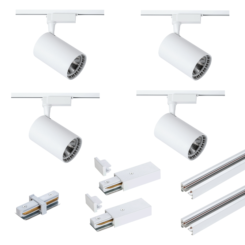 Zestaw oświetlenia szynowego 2 x szyna 1-metrowa 4 x reflektor 15 W biały