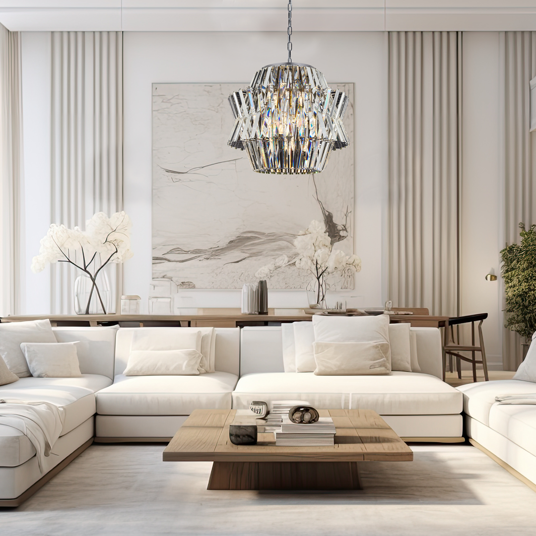 Crown Żyrandole z naszej kolekcji Crown to harmonia elegancji i funkcjonalności. Proponujemy kryształowe lampy sufitowe dostępne w dwóch wytwornych wykończeniach: satynowym złocie lub chromie, wykonane z najwyższej jakości stali nierdzewnej. Te wyjątkowe żyrandole to esencja stylu glamour, łącząca lśniący blask kryształów z solidnym wykonaniem metalowej konstrukcji. Perfekcyjne detale i unikalny design czynią żyrandole z kolekcji Crown nie tylko źródłem światła, lecz również niepowtarzalnym elementem aranżacyjnym. Doskonale komponują się z wnętrzami w stylu glamour, dodając im niezwykłego uroku oraz luksusowego charakteru. Wspaniale pasują do salonów, nadając im atmosferę pełną blasku i wyrafinowanego smaku. Przeniknij do świata kolekcji Crown i odkryj wyjątkowość tkwiącą w tych kryształowych żyrandolach, które staną się wyrazistym i niezapomnianym elementem Twojego wnętrza.
